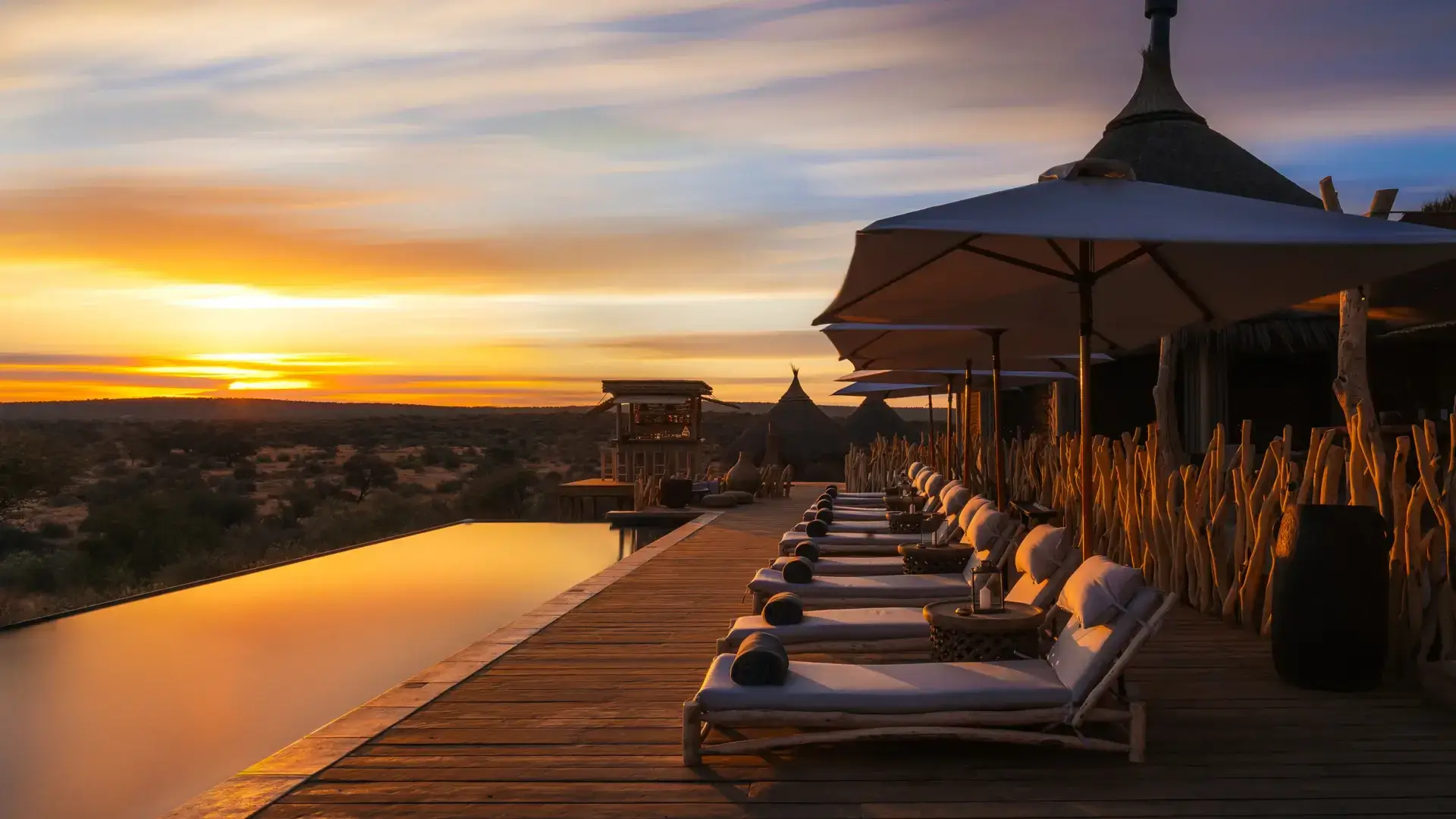 Den uppvärmda poolen med framför loungen och restaurangen på Omaanda | Foto: Zannier Hotels Omaanda