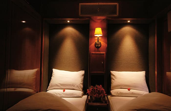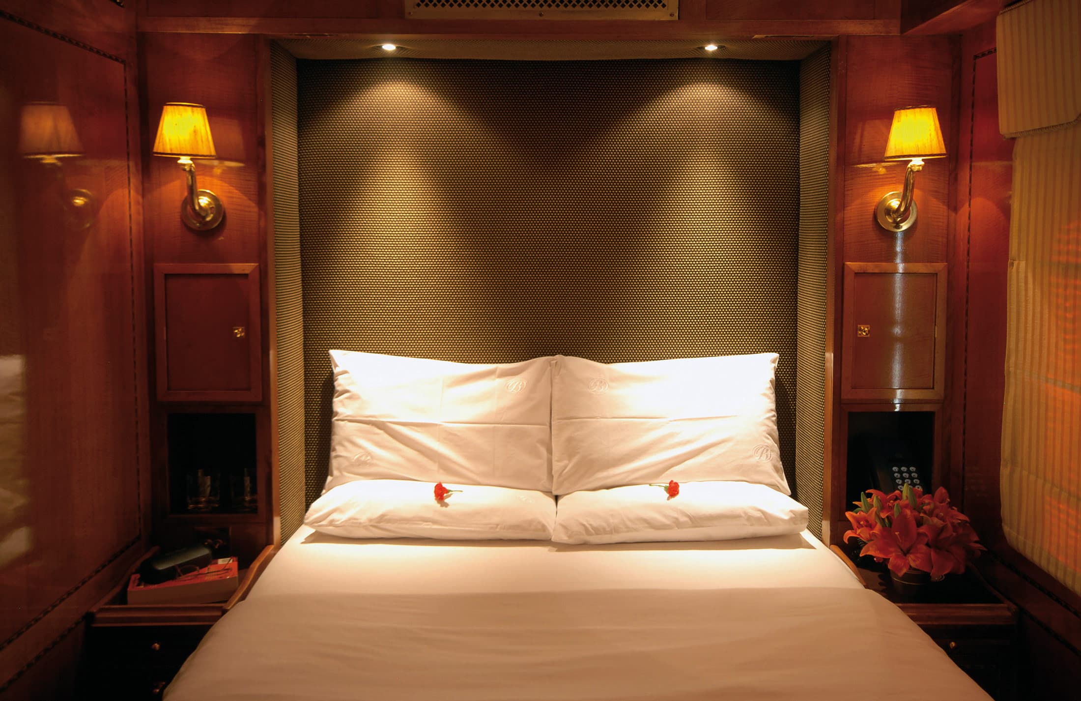 Samtliga kupéer har dubbelsäng eller två enkelsängar, skrivpulpet, säkerhetsskåp och minibar som fylls efter dina önskemål. Ej TV eller internet. Rumsservice är tillgängligt dygnet runt. I sista vagnen finns en panoramavagn med extra stora fönster och en balkong.
