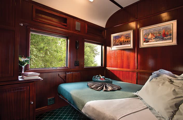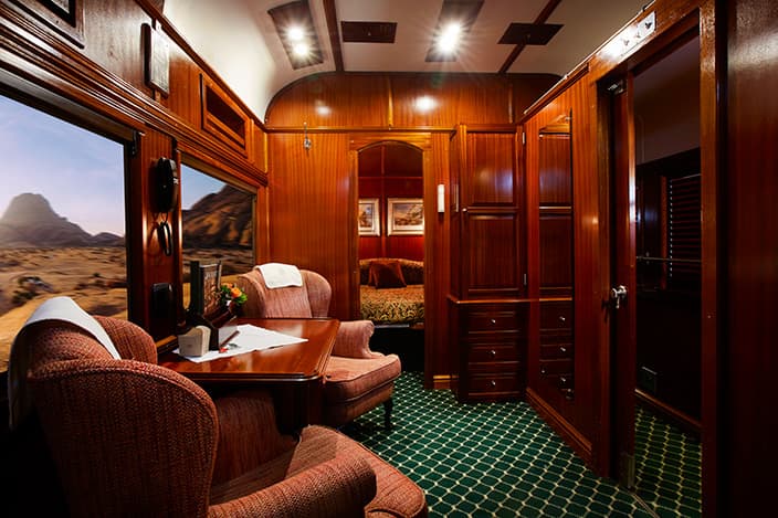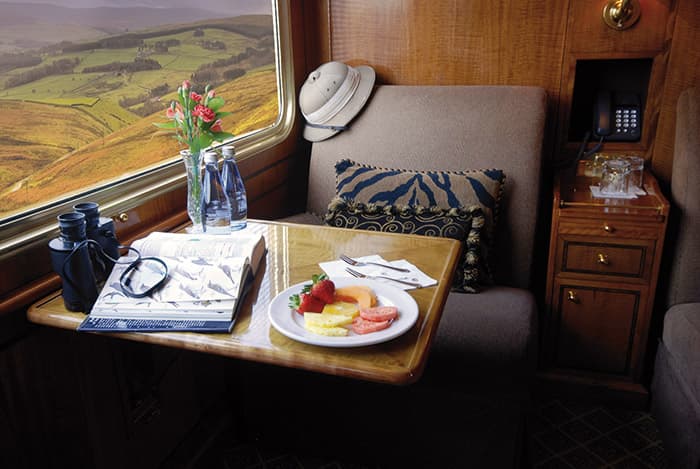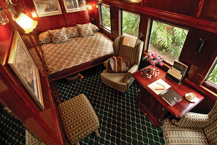 Via femstjärniga upplevelsen ombord på Rovos Rail kan du skåda det spektakulära landskapet från delar av Zimbabwe, Botswana och Sydafrika. Följ med på en resa från Victoriafallen till Pretoria, tre nätter och fyra dagar. Resan börjar på det anrika Victoria Falls hotell i Zimbabwe, på Rovos Rail’s lounge – med ett glas bubbel och tilltugg. Efter tågvärdens tal och information om resan blir du eskorterad av en tågvärdinna till din lyxiga kupé.
