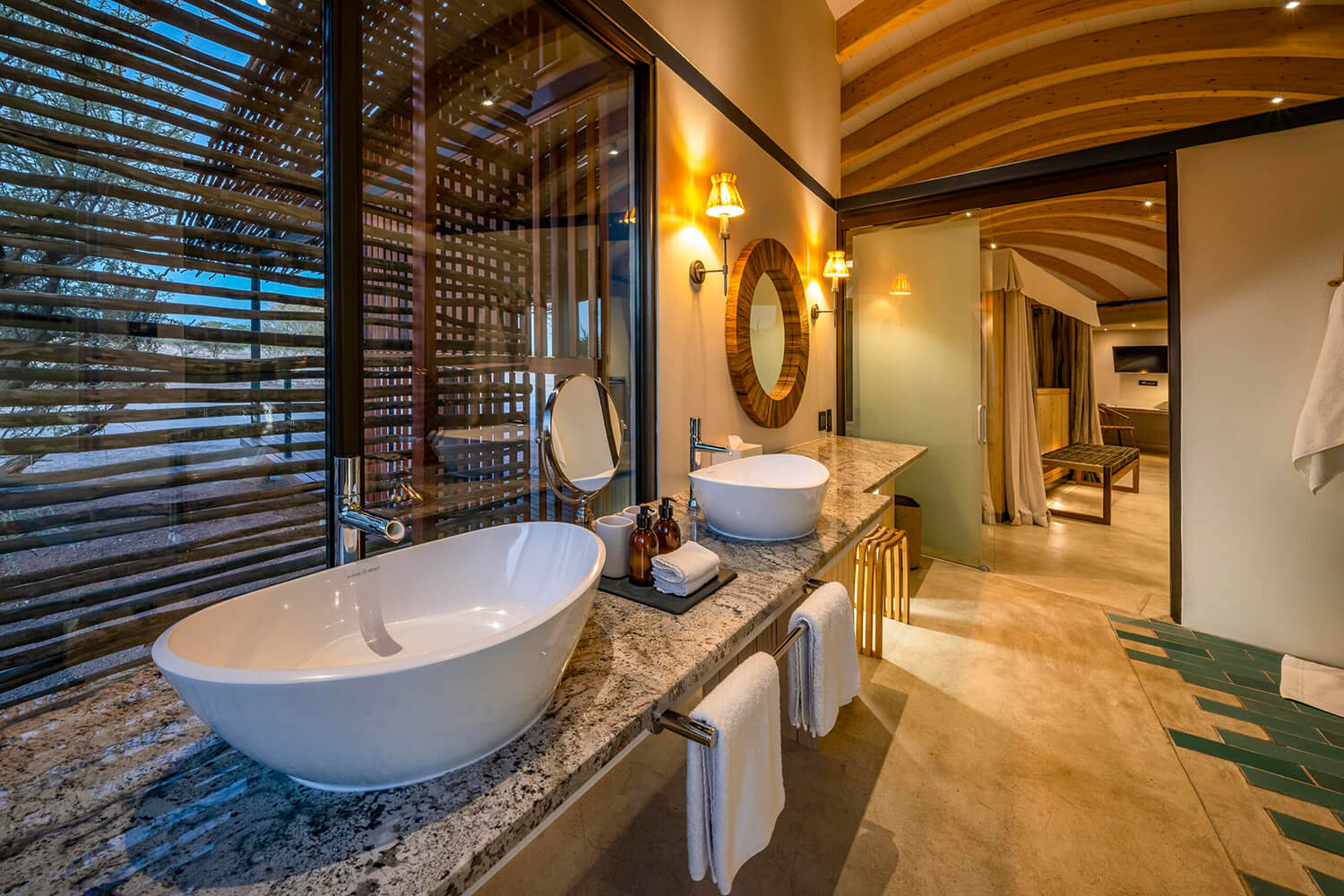 Eleganta Little Ongava ligger på toppen av en bergknalle och har en magisk utsikt över det 30 000 hektar stora Ongava Game Reserve. Reservatet gränsar i norr till den enorma nationalparken Etosha. Den lilla avskilda lodgen är en av Namibias mest exklusiva och består av endast tre sviter. De mycket rymliga sviterna är inredda med naturmaterial i jordnära färger och utrustade med alla bekvämligheter du kan önska. De spatiösa badrummen är begåvade med badkar från vilken du har en magisk utsikt. Alla sviter har dessutom inne- liksom utedusch, privat pool, egen terrass som mynnar ut i en fantastisk utsikt över vattenhålet. Samma förtrollande utsikt har du från restaurangen där välsmakande måltider serveras under den klara stjärnhimlen. Till vattenhålet framför campen kommer ofta både den vita och svarta noshörningen för att dricka. Förutom safari på morgon och kväll erbjuder Little Ongava även nattsafari. Little Ongava är perfekt för smekmånadsresenärer—mycket mer privat och romantiskt blir det inte!