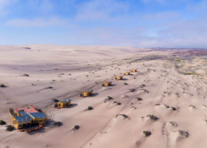Skelettkusten har fått sitt namn efter de otaliga skeppsvrak som genom åren har sköljt upp utefter Namibias kust efter hårt väder. Få boenden är därför så unika som Shipwreck Lodge! Lodgens tio sviter är byggda som förlista skepp och utplacerade utefter Namibias ökända kuststräcka. Lodgens sviter drivs med solceller och erbjuder en enastående utsikt över det majestätiska Atlanten. Sviternas inredning går i ljusa träslag vilka blandas med färgstarka detaljer. I den smakfulla huvudbyggnaden finns lodgens trivsamma restaurang och bekväma lounge med öppen spis. Utomhus på det rymliga trädäcket kan du njuta av en drink medans du tar in den fantastiska utsikten. Shipwreck Lodge erbjuder många olika aktiviteter såsom att köra fyrhjuling på dynerna, sandboarding och fiske (haj m fl). Skelettkustens nationalparks namn till trots, finns det dessutom en hel del djur i området.