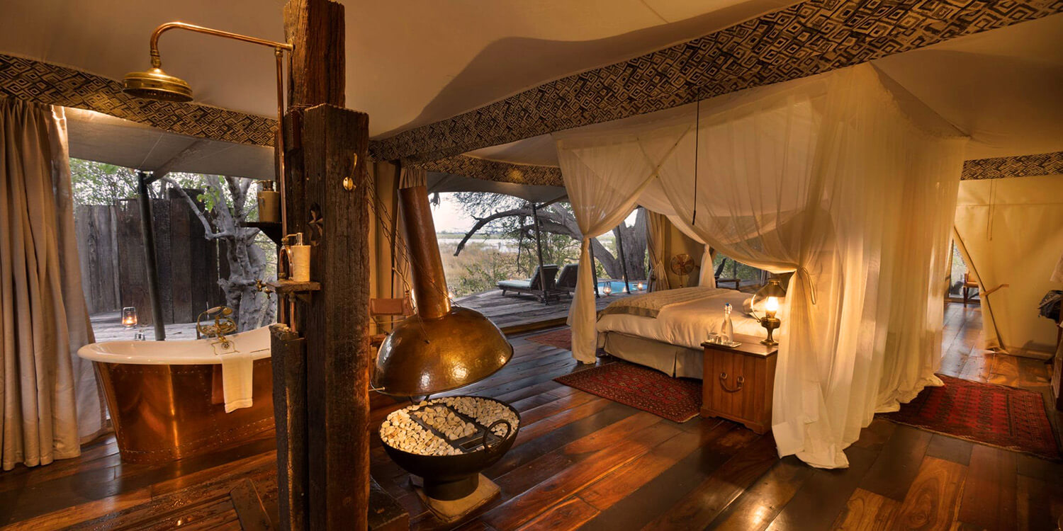 Eleganta Selinda Camp ligger vid vattendraget som förbinder Okavangodeltat med den djurrika flodslätten Linyanti. Campens tre lyxtält har en fantastisk vacker panoramautsikt över den palmkantade flodbädden. Tälten är rymliga och vackert inredda med möbler från hela Afrika. Varje tältsvit är dessutom utrustade med alla moderna finesser du kan tänka dig för att maximera din trivsel under vistelsen. De flotta badrummen har en öppen planlösning och försedda med ett stilfullt kopparbadkar. Det stora inbjudande trädäcket lockar med en spektakulär utsikt över djurlivet. Är du en familj eller två par som reser tillsammans, finns Selinda Suite med två sovrum, egen butler, kock och safarijeep. Selinda Camps njutbara trerättermåltider intas antingen under stjärnorna eller på väl valda platser omkring i campen. Här finns förutom en välfylld vinkällare liksom bar även spa, gym och shop. Campen tillhandahåller med kikare under din vistelse och har dessutom professionell kamerautrustning för uthyrning att tillgå. Förutom jeepsafari två gånger om dagen erbjuder Selinda Camp vandringssafari, nattsafari, båtsafari, fiske och helikopterturer. Selinda Camp är medlem av Relais & Châteaux.