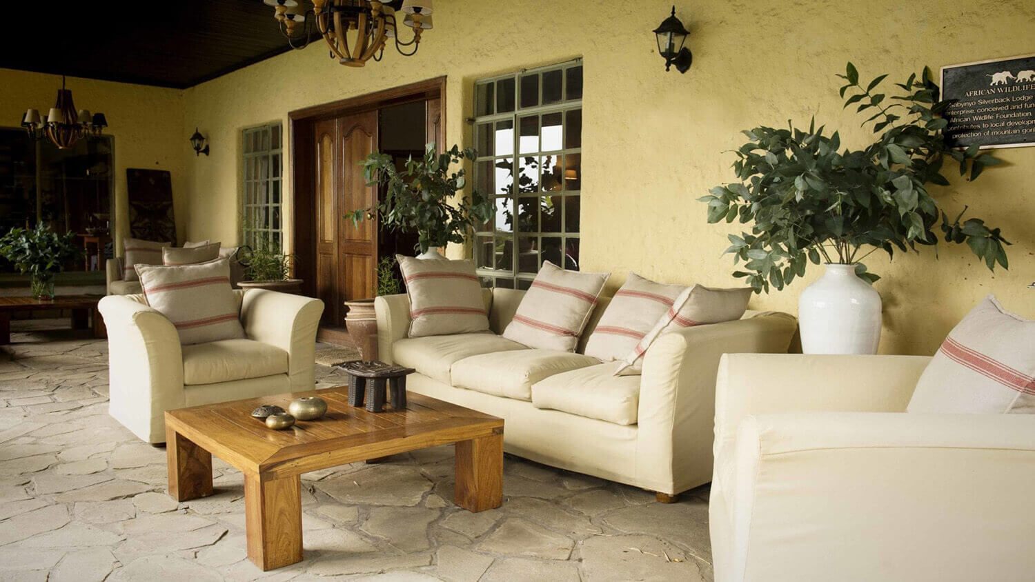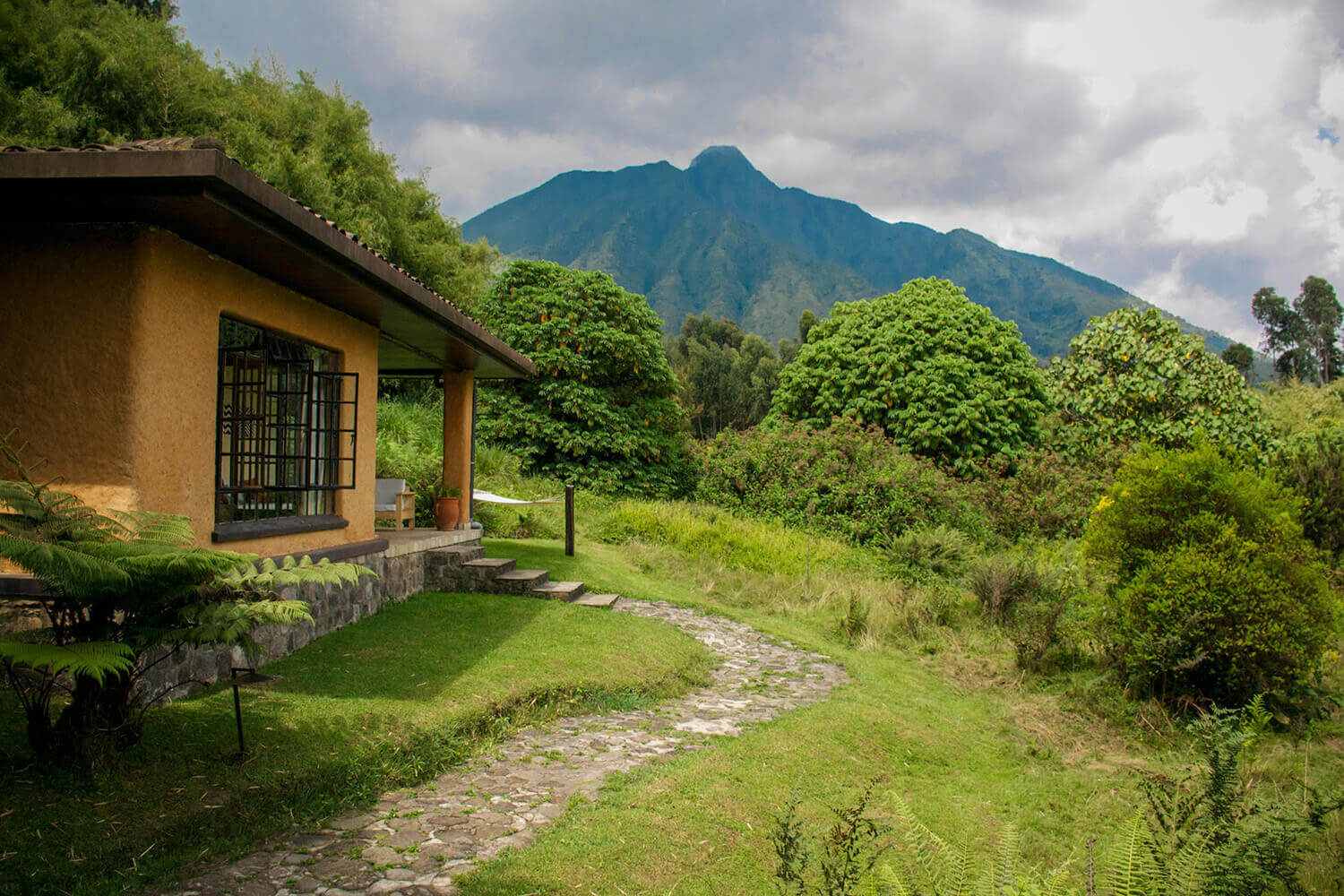 På den ugandiska sidan av Virungabergen, strax intill gränsen till Mgahinga nationalpark, ligger Mount Gahinga Lodge – en liten, charmig och stämningsfull lodge omgiven av lummiga trädgårdar och med fri sikt mot de dramatiska vulkantopparna. Du bor i ett fåtal fristående bandas med vardagsrumsdel, öppen spis, rymliga badrum och egen veranda där du kan sjunka ned i en fåtölj efter dagens vandring och låta intrycken sjunka in med utsikt över dalgångarna och vulkantopparna. Inredningen är varm och hemtrevlig, med naturmaterial, textilier i jordnära toner och diskreta detaljer inspirerade av Batwa- och Bafumbira-kultur – mer rustik bergslodge än klassisk savanncamp.